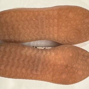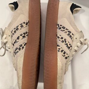 Adidas platform shoes with cream base and black leopard details. Gently used, size women’s 10.