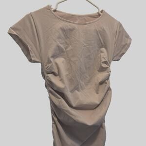 BLANQI Dress Maternity Medium Everyday Cap Sleeve Crew Neck Dress Frosty Pink
