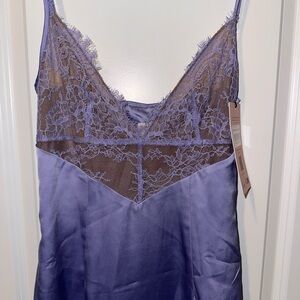 Chic lavender chemise with lace accents. Perfect for intimate wear.