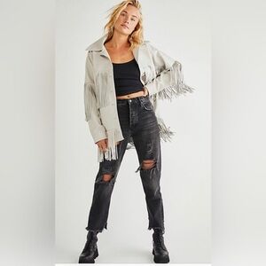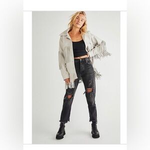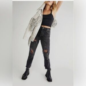 Free People We the Free Obsidian Distressed Tapered Baggy Boyfriend Jeans Size 24 new