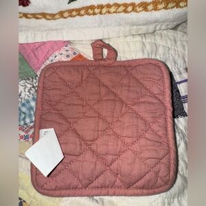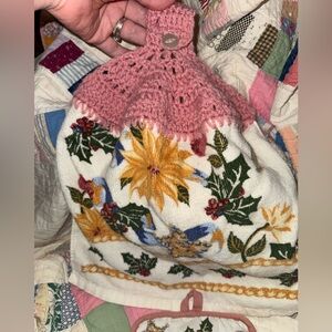 Vintage Pink Hanging Tea Hand Dish Towel with matching Pot Holder Hot Pad
