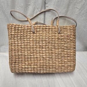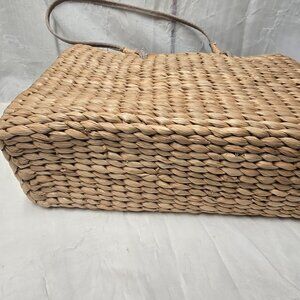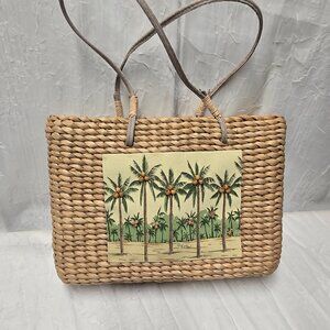 New, never used Sun 'N' Surf Woven Wicker Small Tote. By Paul Brent. Features Wooden Beaded Paul Trees. Zippered Closure with inside pockets.10.5"x 7".
