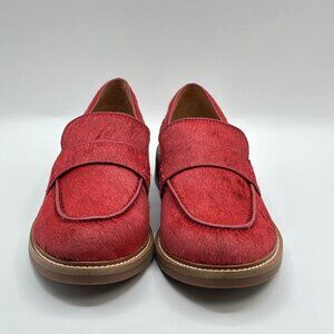 Women's Lucky Brand Salima Loafer Flat Shoe Cow Hair Upper Red Sz 8.5 M/39.5 NEW