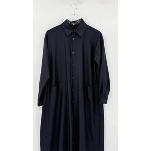 Eskandar Wool Silk Midi Shirtdress Button Up Lagenlook Minimal Size 0 (US 6-8)