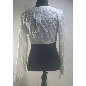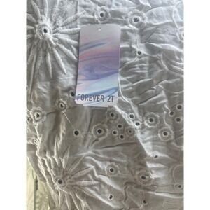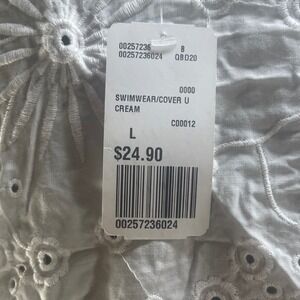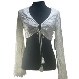 Forever 21 Cream Eyelet Swim Cover Up Top Tassel Tie Long Sleeve Y2K coquette
