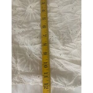 Evoke sun-kissed days with this breezy cream-colored eyelet swim cover-up. Delicate eyelet detailing dances across the fabric, creating an airy and feminine feel, while the long sleeves offer a touch of sun protection and elegance. The front tie closure, adorned with playful tassels, allows you to adjust the fit to your liking, accentuating your silhouette. A gorgeous addition to your vacation wardrobe, this cover-up effortlessly transitions from poolside lounging to beachside strolls. Pack it for your next tropical getaway, summer music festival, or casual brunch date on a sunny patio.