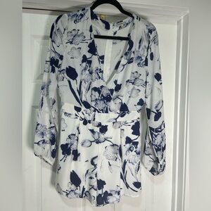 Charlotte Russe Navy and White Floral Long Sleeve romper