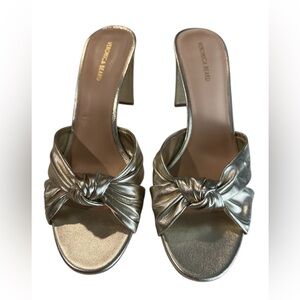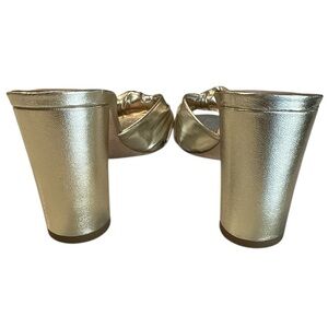 Veronica Beard Ganita Ecru Knot Metallic Gold Mules Slip On Heels New Size 9