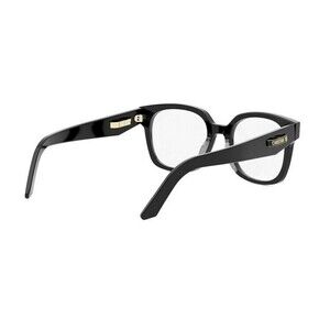 The CDiorO S5I optical glasses feature a striking black square acetate frame paired with clear lenses. The design is enhanced by metal hinges adorned with the CD signature and a golden plaque that reads CHRISTIAN DIOR, showcasing the brands luxurious heritage.