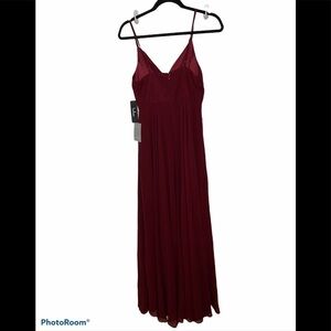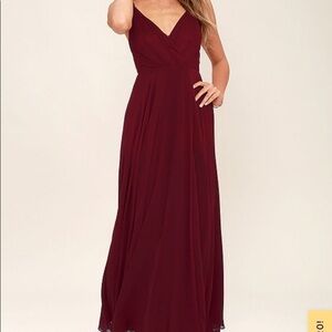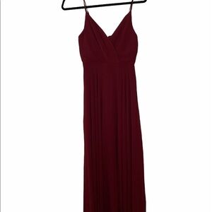 All About Love Wine Red Maxi Dress, size small, fitted waist, and cascading maxi skirt. Adjustable straps. Hidden back zipper/clasp, Fully lined,