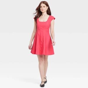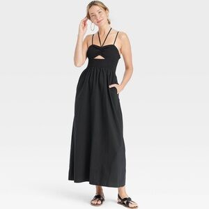 Show off a chic, feminine look for daytime outings or evening get-togethers with this Flutter Short-Sleeve Maxi A-Line Dress from A New Day. This maxi A-line dress has a keyhole V-neckline, short ruffle sleeves, an elasticized waist and a side slit for a flattering look. It's crafted from midweight recycled polyester fabric for all-day comfortable wear, and you can pair it with sandals and matching accessories to complete the ensemble.