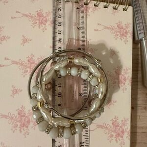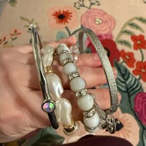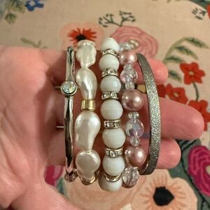 Enhance your style with this chic bracelet set featuring white and pink pearls paired with silver accents. Perfect for any occasion.