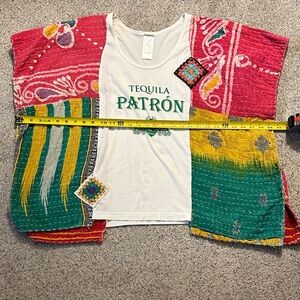 Upcycled Tequila Patrón Kantha Patchwork Embroidered Tee