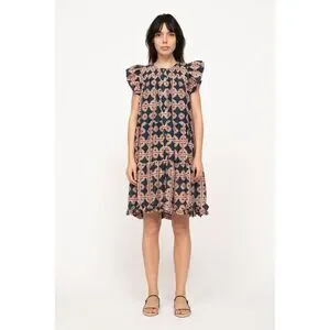 Sea New York Leigh Print Short Sleeve Tiered Mini Dress size M Multicolor