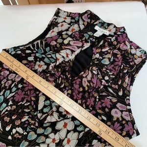 Dark floral sleeveless keyhole ruffle neck top spring summer fall feminine boho