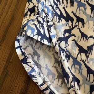 Adorable and eye-catching Jane and Delancey blouse featuring an all-over giraffe print in layered navy and soft blue tones. This lightweight 100% rayon fabric offers beautiful drape and a relaxed, flowy silhouette.
