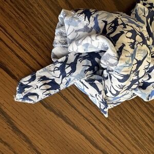 Jane & Delancey Giraffe Print Button Blouse XL Long Sleeve Roll Tab Blue Rayon