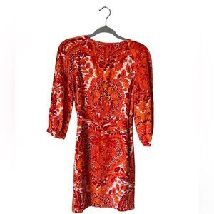 Trina Turk Orange Mini Dress Floral Print Blouse Size 0