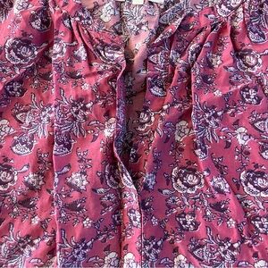 XiRENA Pink Wild Rose Floral Cotton Silk Boho Cottagecore Romi Top Blouse Large
