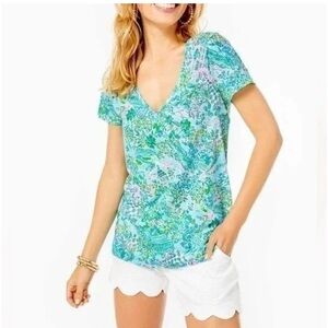 Made of a blend of cotton and silk in a vibrant pink-and-purple floral print, the Romi top has a deep V-neck, balloon sleeves and pleats around the collar for a loose, breathable fit. Made in Los Angeles. Style No. T1181-611-NOC