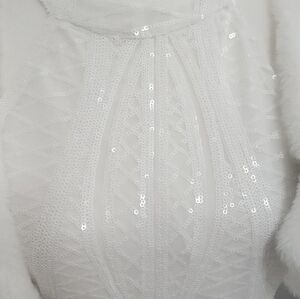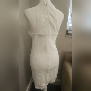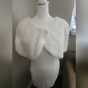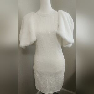 Perfect for your Bachelorette party that requires sequins! NWT halter sequined white dress with a faux fur stole to keep your warm. Stole is lined.