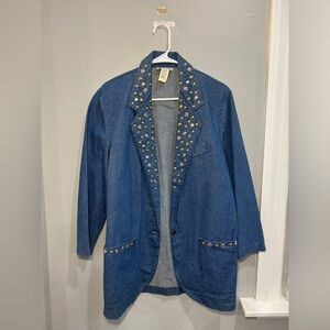 Vintage IDEAS Denim Jacket Blazer Unlined Gold Rhinestone Studded Size Small
