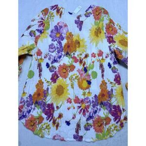 Habitat Clothes To Live In NWT XXL Multi Floral Crinkle Cotton Button Up Shirt
