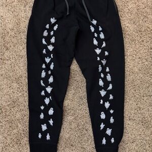 Stylish black joggers featuring a playful ghost print. Perfect for casual wear.