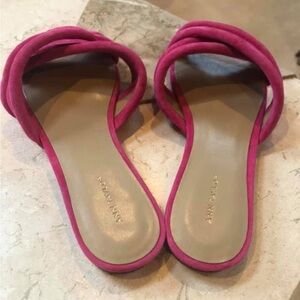 Ann Taylor NEW Hot Pink/Fuchsia Criss/Cross Suede Slide Flat Sandals Women’s 8M