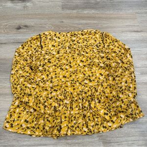 Chic mustard blouse with floral pattern. Features long sleeves and a relaxed fit. Ideal for casual outings.