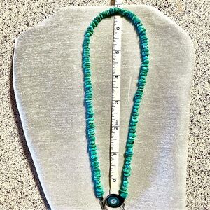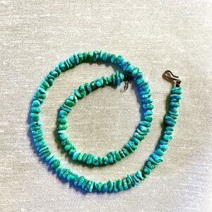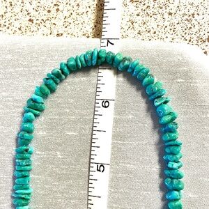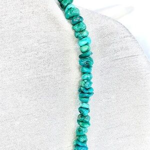 Beautiful genuine vintage handmade turquoise chunk necklace from a local New Mexico artist. Features unique green blue stone beads. 9” Hook Closure