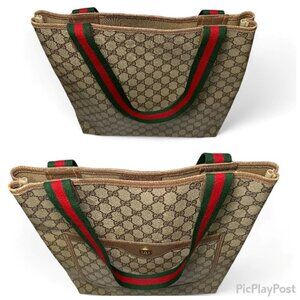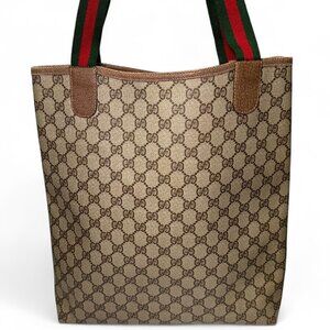 GUCCI - Vintage Supreme Coated Canvas Sherry Line Tote Bag