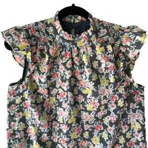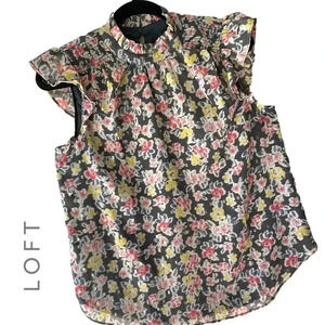 LOFT | NWOT | SLEEVELESS FLORAL SMOCKED RUFFLE TOP GOLD SHIMMER | SIZE: SMALL