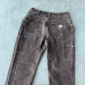 Carhartt WOMENS brown double knee work wear carpenter pants. Great faded pair! Measure 29x30 and a 9 inch leg opening. Please check measurements before purchasing. I do my best to show any flaws in pictures. Quick shipping! Bundles encouraged!
