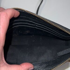 Chic black crossbody bag by Tory Burch. Features elegant gold chain accents and iconic logo. Perfect for versatile styling. Minimalist, pocketbook, card holder, tiny bag, mini.
