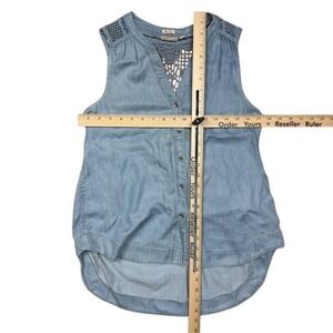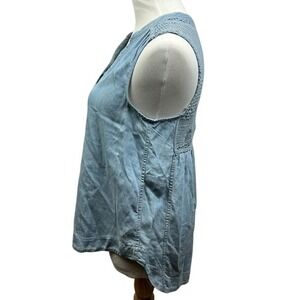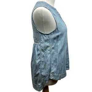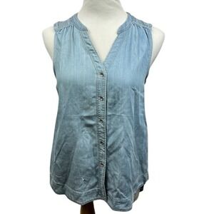 Holding Horses Anthropologie Blue Chambray Sleeveless Lace Back Button Top Sz 2