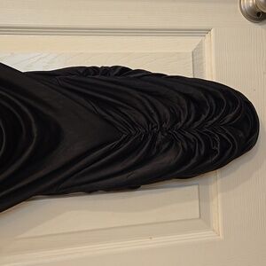 Chic black sleeveless dress with gathered details. Perfect for any occasion.
