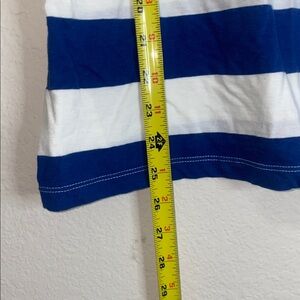 🎱Blue and white striped tank top with lace crochet like patterned straps!