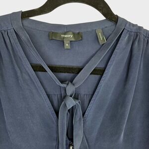 Theory Womens Bernetta Long Sleeve Pebbled Seersucker Silk Blouse SZ M Flowy