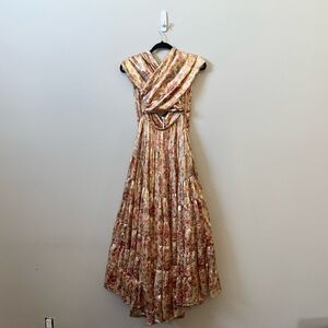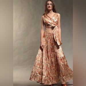 Free People Something Magical Maxi metallic floral bronze wrap top dress