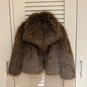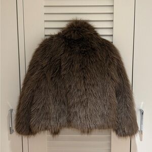 Chic and cozy teddy jacket. Soft brown faux fur. Perfect for warmth and style.