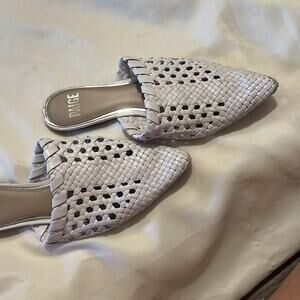 A chic pair of woven leather mules for easy yet sophisticated style. Leather upper Point toe Slip-on style Leather lining Padded insole Leather sole Imported Please note: Fits true to size. Paige. Color: White. Size: 7.5.