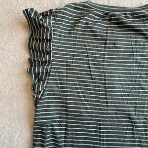 NWT Olive Green Striped Ruffle Sleeve Tee Womens Casual Pocket Top Size M