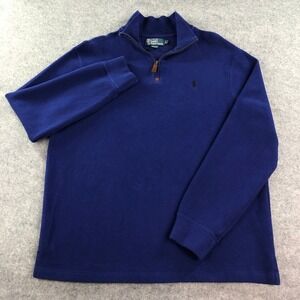 Polo Ralph Lauren Mens L Blue Cotton Quarter Zip Pullover Sweater