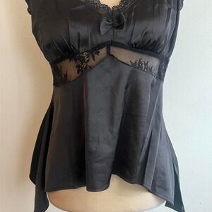 killstar zaria top sizse small black lace cami top with bow shark bite cut