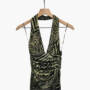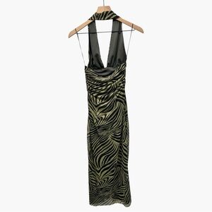 Zara Printed Tulle Halter Dress Green Black Midi