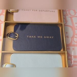 Embossed travel- themed phrases: "Ready for Departure," "Take Me Away," and "Born to Roam
