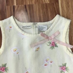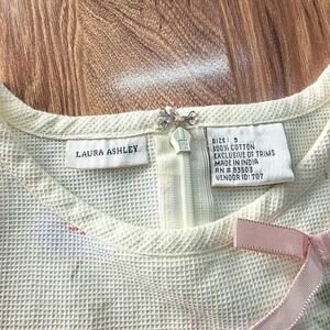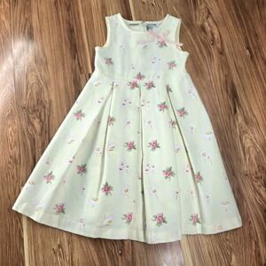 Vtg Laura Ashley Dress Girls 5 Butter Yellow Floral Pleated Bow Waffle Knit
