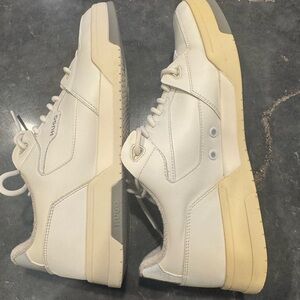 White leather upper with cream sole and subtle logo details. Elevated everyday shoe with premium feel.
