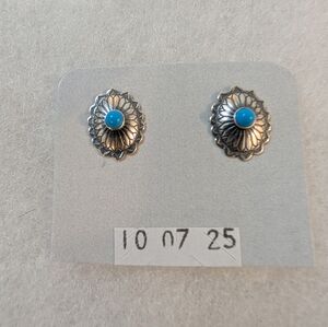 Native 925 Sterling silver and turquoise stud earrings. Not signed.
